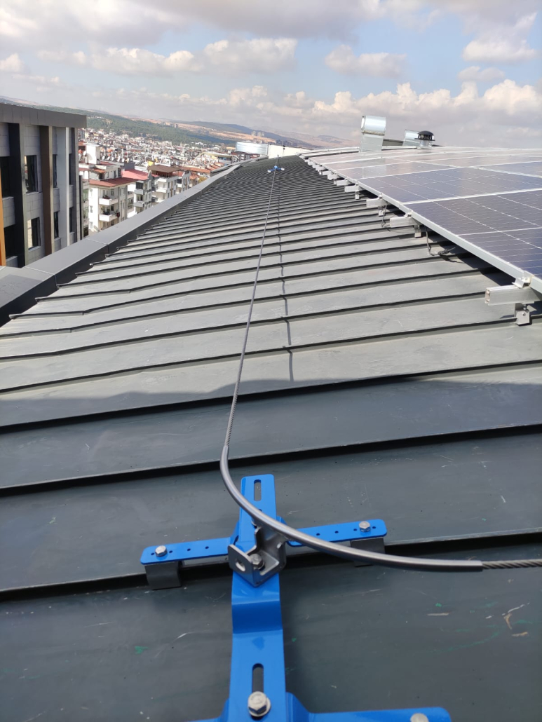 Yatay yaşam hattı, çatı kenarları ve üretim sahalarında siz ve ekip arkadaşlarınızın serbestçe hareket ederek düşmeyi engelleyecek şekilde bağlanabildiği paslanmaz çelik halat veya ray sistemidir; genellikle 8-10 mm çapında halat ve TS EN 795’e uygun ankrajlarla kurulur ve çoğu tasarımda iki kullanıcıya kadar eşzamanlı çalışma dikkate alınır, böylece bakım ve montaj operasyonlarında düşme riskini anlamlı şekilde azaltır.