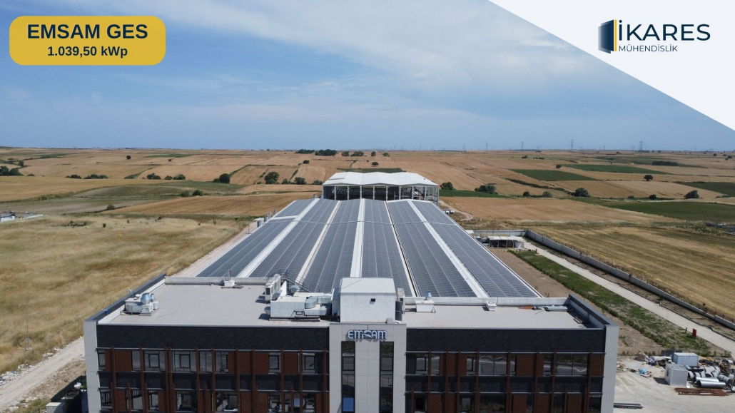 Firmamız, Emsam Fabrikası’nın enerji ihtiyacını karşılamak üzere yürüttüğümüz bir projenin başarılı tamamlanmasını sizinle paylaşmaktan büyük bir memnuniyet duyar. “Emsam Fabrikası” adını taşıyan bu projede, fabrikanızın çatısına başarıyla entegre edilen 1039,5 kWp gücündeki anahtar teslim Güneş Enerjisi Sistemi (GES) ile çevre dostu ve sürdürülebilir enerji çözümleri sağladık.